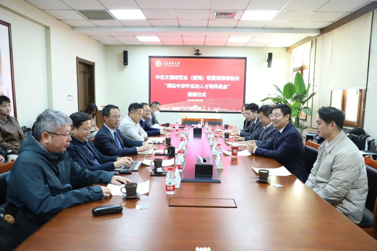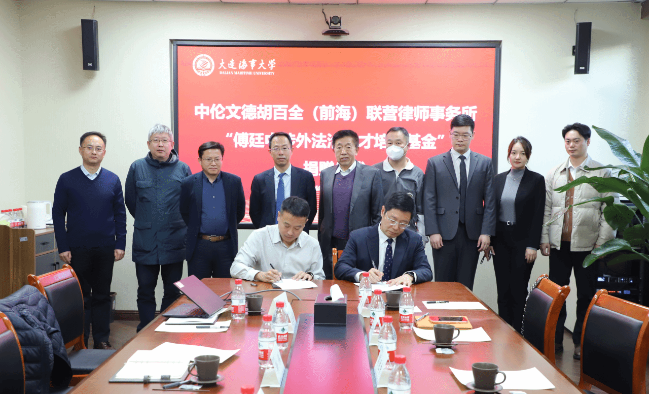 清华大学法学院教授、大连海事大学法学院原院长傅廷中,中伦文德胡百全(前海)联营律师事务所主任林威,深圳校友会法学分会(筹备)秘书长王羿贺,中伦文德(大连)律师事务所相恒文、朱妍律师;大连海事大学法学院院长朱作贤,校友事务与合作处副处长靳伟,法学院副院长蒋跃川,法学院海商法系主任夏元军,法学院副教授谷浩,上海段和段律师事务所海商海事部负责人、大连办公室合伙人李东出席仪式,仪式由朱作贤主持。