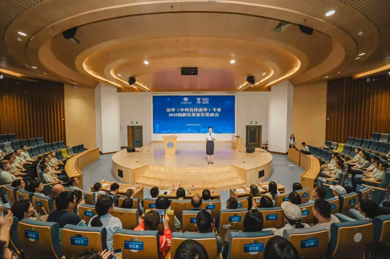 8月30日,法学(中外合作办学)专业2025级新生及家长见面会在新图书馆报...
